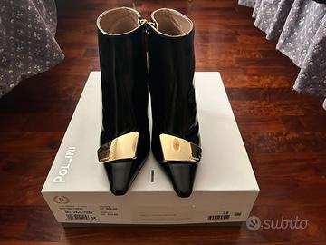 Stupendo Tronchetto Polloni vitello spazzolato nero con placca dorata tacco 10 cm cerniera interna scatola originale indossate solo 2 ore acquistate a gennaio 2026. Disponibile anche in taglia 40 identico acquistato stesso giorno.