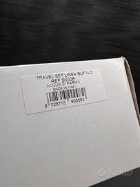 Pochette in pelle di bufalo, cuscino e mascherina occhi. Tutto nuovo completo di scatola