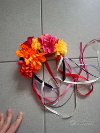 Vestito scheletro, chitarra fatta di cartone con carcassa per coriandoli, cappello mexicano ( sombrero ), cerchietto floreale per soggetti femminile. Costume si carnevale o halloween.