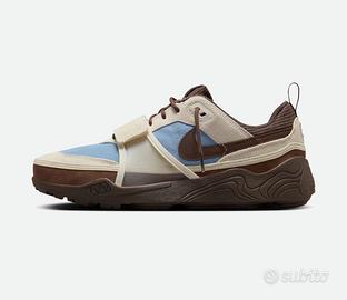 presenta le peculiarità e l'unicità dello stile di Travis Scott in un'edizione tutta nuova, che tiene il passo con i ritmi irrefrenabili di questo performer energico e straordinario. La scarpa offre trazione, comfort e traspirabilità per chi deve affrontare una routine impegnativa, che non lascia spazio al riposo. Fusione di due icone degli anni Novanta, il design unisce una tomaia in pelle pieno fiore, suede e tessuti traspiranti ispirata al modello Nike Land Shark a un'intersuola ammortizzata che prende in prestito le linee di design da Zoom Spiridon.