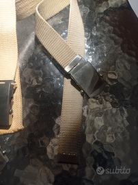 Tre cinture della Marina militare autentiche,degli anni'90. Color cachi( più scuro del beige) usate con la divisa colore cachi. Due, non hanno la punta terminale in metallo e sono usurate. la terza è in ottime condizioni.