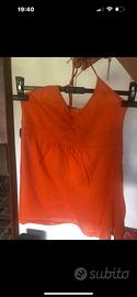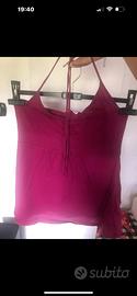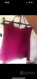 3 top di diverso colore: giallo, ciclamino e arancione. Modello semplice a triangolo sullo scollo con 1/2 schiena nuda. Usati pochissimo.