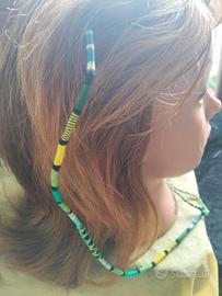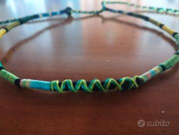 Collana/treccina artigianale in morbido filo di cotone egiziano N°5. Resistente ai lavaggi Lunghezza lavorazione 35 cm Disponibili in diversi colori Oltre ad essere utilizzata come girocollo o coroncina può essere applicata ai capelli con forcina e/o piccolo elastico. Realizzo su ordinazione (massimo 8 colori)