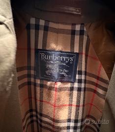 Trench Coat Burberrys London vintage perfette condizioni colore oliva chiusura frontale con abbottonatura maniche lunghe polsini con cintura due tasche a filetto laterali fodera a quadri Disponibile per consegna a mano (Roma e Castelli Romani)