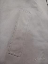Elegante soprabito modello trench/car coat della storica casa di moda milanese Del Mare 1911. Un capo dal taglio classico e senza tempo, ideale per le mezze stagioni o per un look professionale e curato. Il colore è un raffinato beige scuro (tonalità fango), estremamente facile da abbinare.
