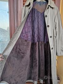 Trench/cappotto vintage donna, fine anni ’80 / primi ’90, modello oversize. Tg XXL Capo foderato internamente con doppio strato: – parte superiore trapuntata – parte inferiore in pelliccia sintetica Chiusura frontale con bottoni, senza cintura, stile minimal tipico anni ’90.