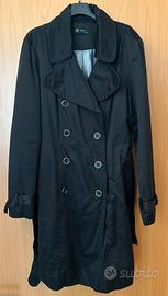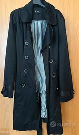 Trench Oviesse con cintura in vita foderato. Spacchetto dietro. 2 tasche laterali Chiusura bottoni e cintura. Cinturini sui polsi Colore nero con fodera grigia. Veste una L Lunghezza cm 91 Larghezza ascelle trench chiuso con 57 Lunghezza spacchetto dietro comunque 25