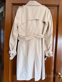 Trench donna primaverile, colore rosa chiaro, stampato all’interno. Marca Freedomday. Taglia L.