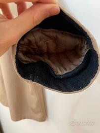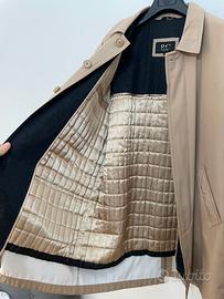 Cappotto imbottito, modello tipo trench con imbottitura trapuntata e fodera in lana Qualche piccolo segno di sporco qua e là, come evidenziato nelle ultime foto. Penso sparisca tutto con un buon lavaggio I bottoni all'interno del colletto (ultima foto) erano per una pelliccetta che non è più presente Misure (cm): - Ascella-ascella: 66 - Spalla-spalla: 53 - Lunghezza: 100