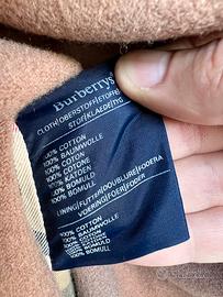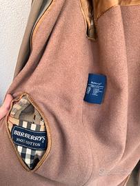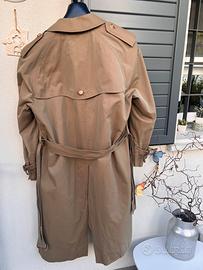 Trench / impermeabile in colore verde kaki come da foto. Modello vintage, con imbottitura in lana e cammello, sfoderabile rimuovendo con cerniera. Marca Burberry, modello vintage anni 90. Materiali: cotone e lana. Il modello dovrebbe essere da donna, taglia M-L, però potrebbe anche essere unisex se non si è troppo alti. Condizioni molto buone considerando che si tratta di pezzo vintage. Come si può vedere dalle foto, presenta piccole macchie, che forse si possono lavare, e qualche segno di usura lungo alcuni bordi della cintura e del trench. Nel complesso, un bel capo.