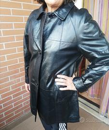 Cappotto, trench, soprabito, Vera pelle, colore nero, tg 44, vintage.