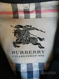 Trench nero, marca Burberry, taglia 48r che corrisponde a S, con fodera tipica Burberry, in misto poliestere e cotone foderato in viscosa. Chiusura 5 bottoni neri con logo e gancetto al collo, maniche lunghe, 2 tasche frontali con patta e bottone con logo e una tasca interna con bottone, cintura con fibbia, polsini con fibbie, spacco centrale sul retro. Lunghezza totale 103 cm di cui collo 6 cm, larghezza spalle 43 cm, larghezza ascelle 50 cm, larghezza fondo 57 cm, lunghezza manica 66 cm, larghezza polsino 13 cm. Peso 800 gr. Indossato una volta, perfetto come nuovo.