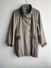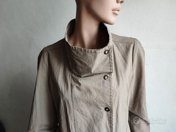 Trench donna PENNYBLACK , tessuto misto lino cotone con rifiniture in pelle, foderato, chiusura con clip, martingala, 2 tasche, taglia 42IT, spalle cm 38, manica cm.64, lunghezza cm. 85