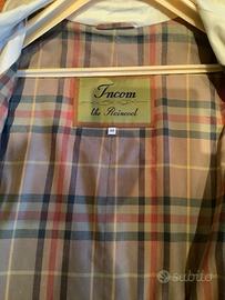 Taglia 48, misure in foto. Fodera interna scozzese. Tasche davanti e cintura in vita. Si segnala internamente sulla fodera puntini gialli del tempo. Si tolgono con un lavaggio. Si inviano ulteriori foto su richiesta