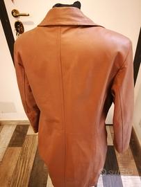 TRENCH Nuovo, in pelle di alta qualità combina eleganza e funzionalità in un design senza tempo,realizzato con materiali pregiati e un taglio sartoriale che valorizza la silhouette, è un capo essenziale per un guardaroba moderno, della BOYSEN'S colore marrone chiaro tag. 44/46.