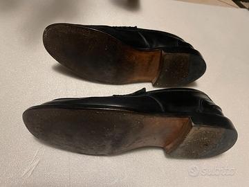 Scarpe uomo Tricker’s originali, modello James penny loafer in pelle nera. Taglia UK 10.5, calza circa 44 EU. Tomaia in pelle con normali pieghe da utilizzo, interno in pelle, suola in cuoio e tacco in gomma con usura visibile ma ancora utilizzabili. Nessuna scatola né scontrino perché acquistate da tempo, garantisco autenticità. Ideali come mocassini inglesi di qualità per ufficio o cerimonia. Prezzo 95 € trattabili