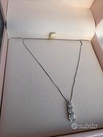 Mai indossato. Oro bianco 9 carati, con tre diamanti incastonati come pendente. Il prezzo di vendita sul mercato supera i 249€, non perdere l’occasione.