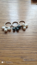 Delizioso tris di anelli in argento 925, con perle non vere a grappolino, n.10 ( dita sottili)_ ritiro a Milano zona Romana o spedizione