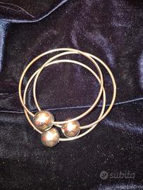 Originale tris di bracciali rigidi in metallo argentato con sfera, da indossare singolarmente o insieme. Diametro 7.5 cm. I miei gioielli vengono consegnati in bellissimi sacchetti di diversi tessuti e colori.