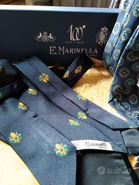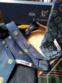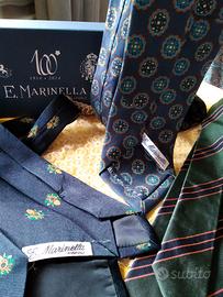 TRE CRAVATTE VINTAGE DI "MARINELLA", DI VARI DISEGNI DI CUI 1 RIPORTA UN DISEGNO DELLA CASA DEL 1948. IN SCATOLA ORIGINALE. (NO VENDITA SINGOLA)