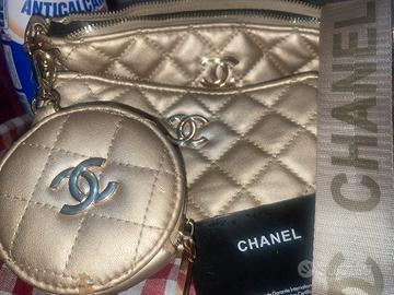 Stupendo tris composto da Pochette di varie dimensioni firmate Chanel. Stile casual texture trapuntata oro e marchio presente internamente con targhetta cucita a mano nell’interno di ognuna !poco utilizzata, leggeri segni di usura dati dal tempo. Per info chiedere in privato, prezzo trattabile.