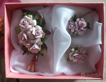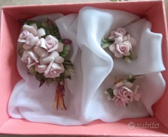 Bellissimo Tris di Due Orecchini e Una Spilla a forma di Rosa in finissima Porcellana di Capodimonte della Carlo Savastano, come da foto in ottime condizioni anzi nuovi mai usati. Vendo a prezzo interessante Contatti anche Whatsapp No Spedizione