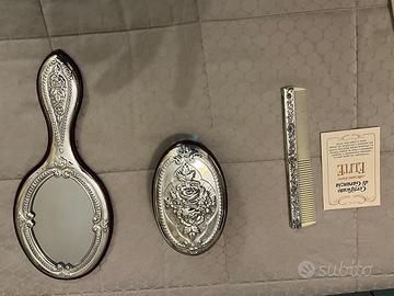 Spazzola, specchio e pettine in argento, mai utilizzato, dalla gioielleria megna graziella