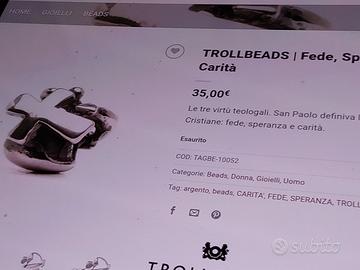 trollbeads fede speranza &carità charme in argento originale vendo a 15 euro con ritiro a mano a Frosinone città