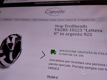 trollbeads lettera N charme in argento originale vendo a 15 euro con ritiro a mano a Frosinone città
