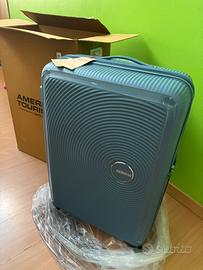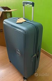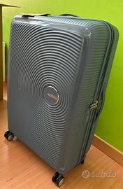 Trolley American Tourister di Samsonite collezione Soundbox. Misura grande 77×51.5×29.5/32.5 cm, Modello espandibile, consente di aumentare la capacità interna quando necessario. Sorprendentemente leggera e altamente resistente agli urti. Colore stone blue. Nuovo con suo imballaggio originale, vendo causa doppio acquisto. Vero affare, prezzo in negozio € 199,90