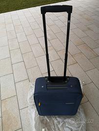 Vendo trolley bagaglio a mano marca Roncato usato poche volte e in buone condizioni estetiche. colore: blu dimensioni (circa): 47x39x17 cm