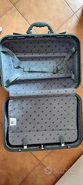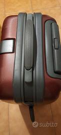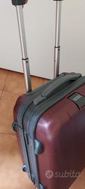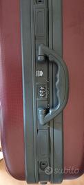 Trolley colore bordox con divisore interno, due ruote, doppio manico. Piccole rigature ma comunque in ottimo stato. Misure: H cm 53 L cm 37 Profondità cm.