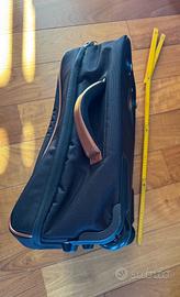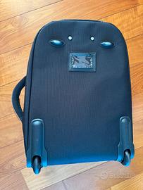 Elegante trolley Bric’s, colore nero con finiture in vera pelle marrone.