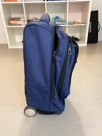 ALTRE CARATTERISTICHE: Nuova apertura totale "USO VIAGGIO". NUOVO CROSSOVER SYSTEM: Gli spallaci si sollevano automaticamente quando usato come trolley. Doppio scomparto. Fondo rigido preformato antiurto effetto carbon. Ruote da 75 mm.