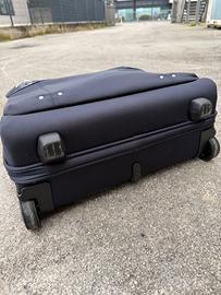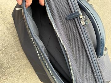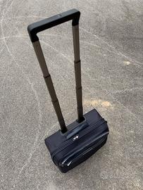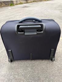 Vendo elegante borsa business Piquadro con sistema a due ruote, modello "Pilotina", in pregiata pelle blu navy. Un accessorio indispensabile per professionisti o piloti che cercano il massimo della funzionalità senza rinunciare allo stile. La borsa è organizzata con la classica cura Piquadro: ampi scomparti interni pensati per documenti, laptop e tablet, con protezione anti-urto. Dettagli principali: • Materiale: 100% Vera pelle bovina con rifiniture a taglio vivo (tipiche del design Piquadro). • Organizzazione: Scomparto imbottito per notebook e slot dedicati per penne, smartphone e cavi. • Sistema Trolley: Manico telescopico a scomparsa con chiusura a zip e ruote silenziose ad alta scorrevolezza. • Portabilità: Doppia maniglia superiore ergonomica per il trasporto a mano. • Colore: Blu notte classico, professionale ed elegante. Condizioni: La borsa è in ottimo stato. La pelle è stata regolarmente curata; le ruote e il manico telescopico funzionano perfettamente. Presenta solo lievissimi e normali segni d'uso alla base (zona ruote) che non ne compromettono l'estetica.