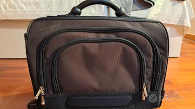marrone con bordi neri - BUSINESS con tasche per documenti e vano abbigliamento. Tutte le cerniere sono bene funzionanti. Le due ruote e il manico bene funzionanti. Dimensione 23 x 33 x 47.