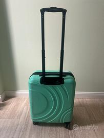 Trolley 55x40x20 cms verde Adatto per tutte le low cost Guscio in ABS molro resistente con qualche segno di usura e guarnigione interna leggermente staccata Ruote girevoli Prezzo originale 64 euro