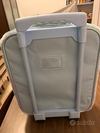 Valigetta trolley “Trilly campanellino “ per bamina . In buono stato, ma presenta una macchia sul lato alto a sinistra copribile con una etichetta per valigia . Le misure sono: altezza cm45, larghezza cm35, spessore cm18. Altezza con il manico aperto cm74.