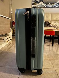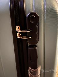 Interno foderato e dotato di cinghie ferma abiti e divisorio con doppia zip