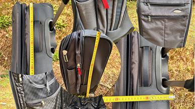 Dotato di soffietto con zip per aumentare la capienza, misure 55x20x35 (vedi foto)