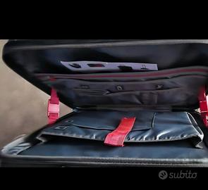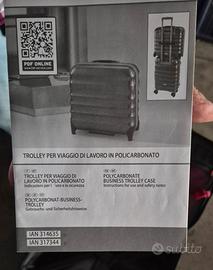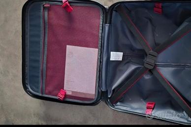 Vendo trolley nuovo mai usato con ancora il cellofane di rivestimento e targhette. oltre ai vestiti c'è anche uno scomparto per computer. Misure come da foto