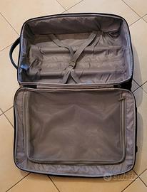Trolley morbido dalle dimensioni contenute, adatte al trasporto in cabina nella maggior parte delle compagnie aeree. Interno attrezzato con elastici ferma abiti e piccola tasca con zip.