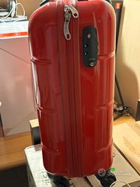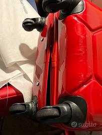 Trolley per cabina Carpisa rosso rigido in polipropilene . Dimensioni 35x52x15 cm. Blocco chiusure con combinazione. Quattro ruote rotanti a 360*. Buone condizioni. Fondo leggermente raschiato con perdita della pellicola ricoprente (vedere foto). Interni come nuovo. Ideale per bambini