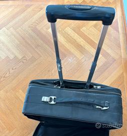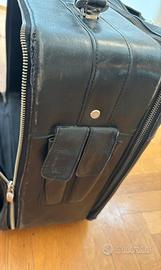 Borsa in pelle nera, molto capiente. Segni di usura / rottura come da foto. Ruotine in buono stato