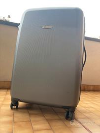 Trolley RONCATO Large rigido quattro ruote multidirezionali con chiusura TSA. Dimensioni 75x53x30, peso 5,6 Kg. Colore Alluminio. Efficiente organizzazione interna, grazie agli elastici per bloccare i vestiti, ai divisori e ai comparti dedicati. Due piccoli segni di usura, praticamente nuovo, ottimo stato, interno nuovo.