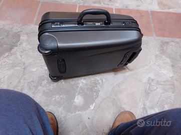 Trolley con ruote misure: cm 33x20xH60. Chiusura a combinazione, doppio vano, doppia maniglia + maniglia estensibile. Marca Benetton.