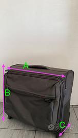 MISURE (vedi ultima foto): A 45cm; B 40cm, C 26 cm (comprese ruote e tasca davanti); con manico esteso altezza totale 101 cm;