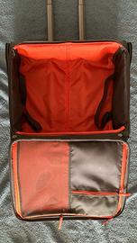 colore grigio scuro, manico estensibile, capiente e molto accessoriato, con tasche interne e scomparti protetti;