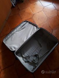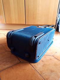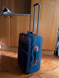 Trolley Samsonite, colore blue con inserti in pelle color cuoio. Misure: Largh. 35 x H 57 x P 23. Prezzo trattabile.