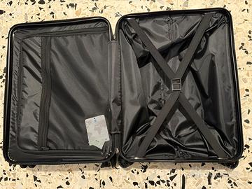 Il design é ispirato alla F1, colore total black, 4 ruote, rigido in formato 55 cabin.